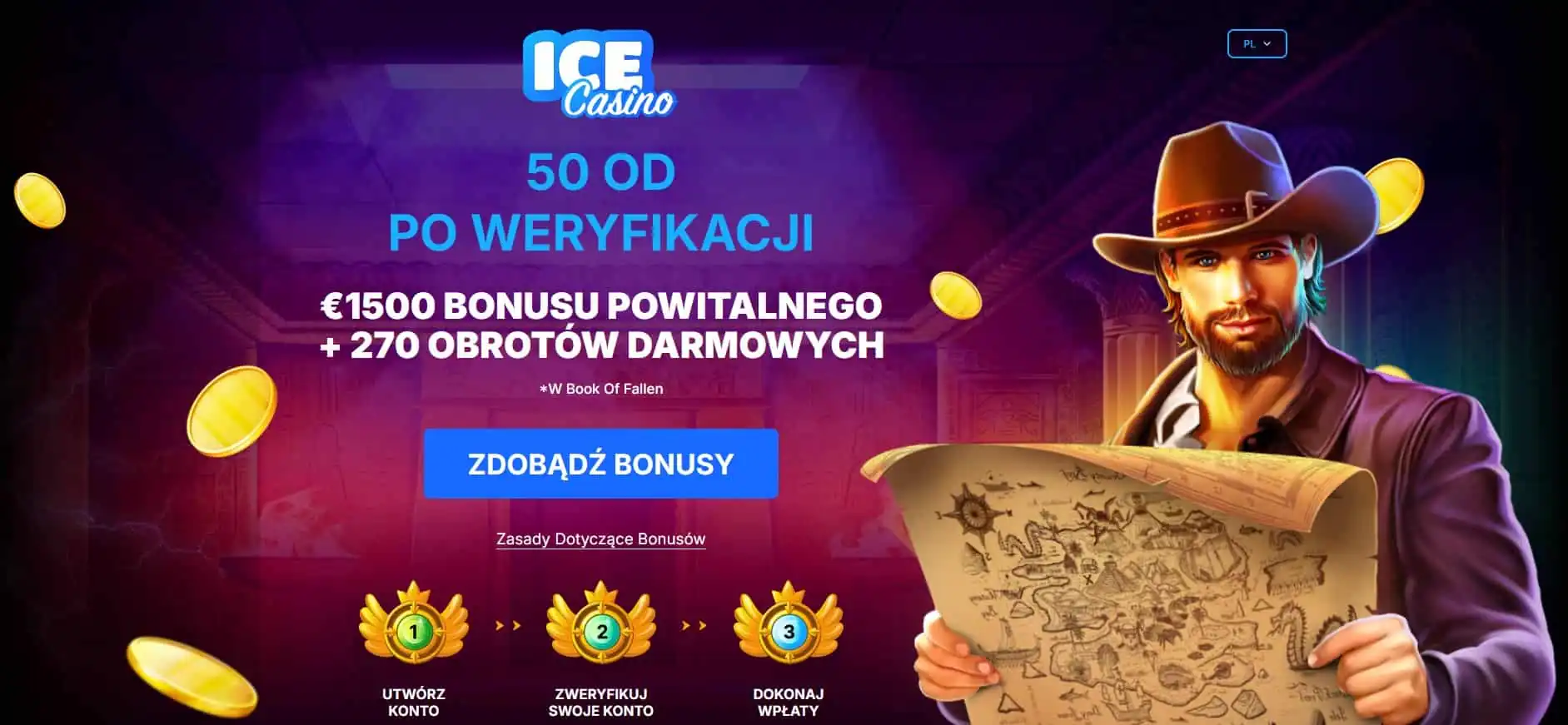 Ice Casino doda do Twojego salda free obroty jeszcze przed pierwszą wpłatą. Po zweryfikowaniu konta i potwierdzeniu numeru telefonu otrzymasz 50 darmowych spinów do użycia na automacie Book of Fallen (Pragmatic Play). Wymóg wager wynosi x5 i musi być spełniony w ciągu 3 dni. Darmowe spiny za weryfikację konta w Ice Casino są promocją ekskluzywną wyjątkowo dla naszych czytelników i mogą zostać aktywowane tylko przez link z naszej strony.